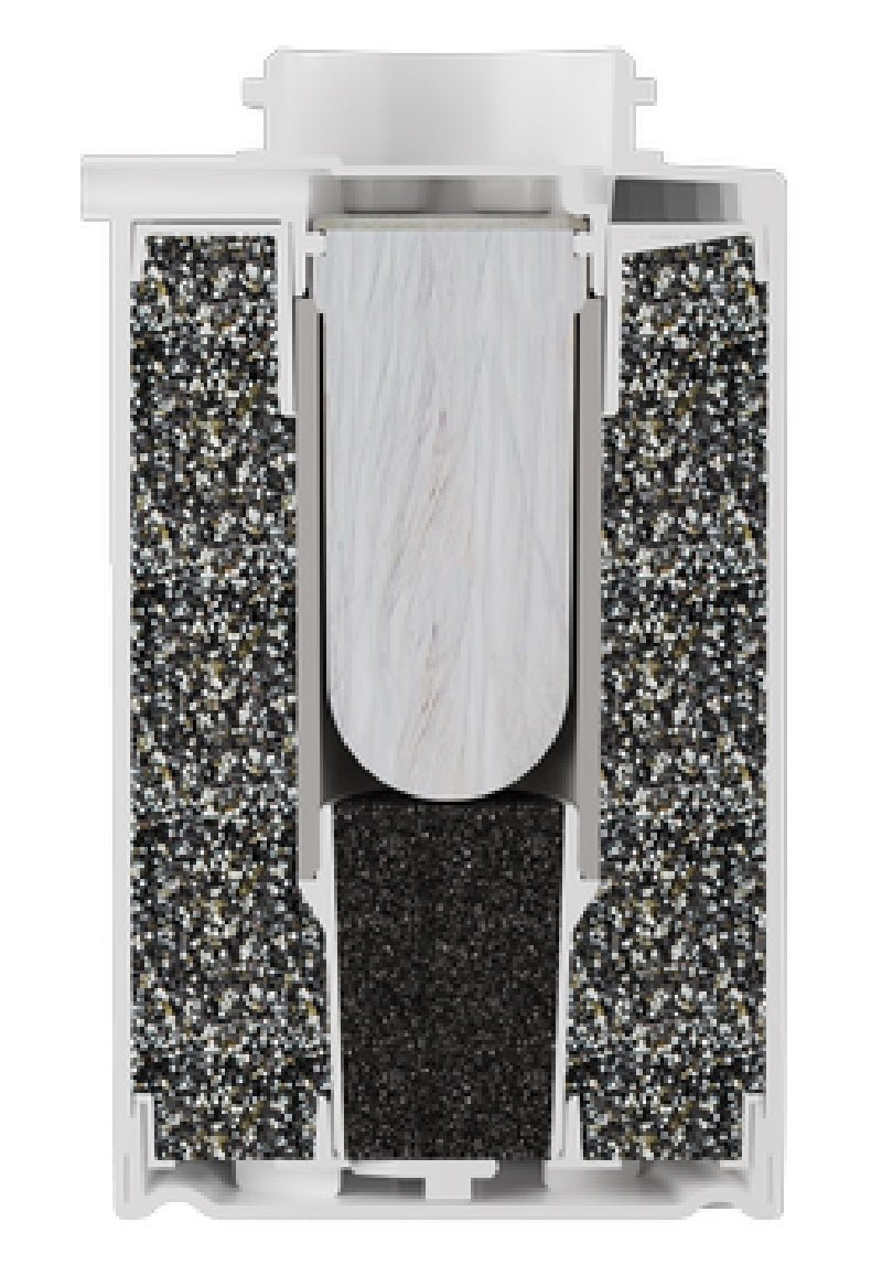 Effektiv dyprensing: Kombinasjonen av AQUALEN-mikrofiberteknologi og aktiv komposittblanding fjerner bakterier, parasitter, klor og tungmetaller, og sikrer rent og trygt drikkevann.