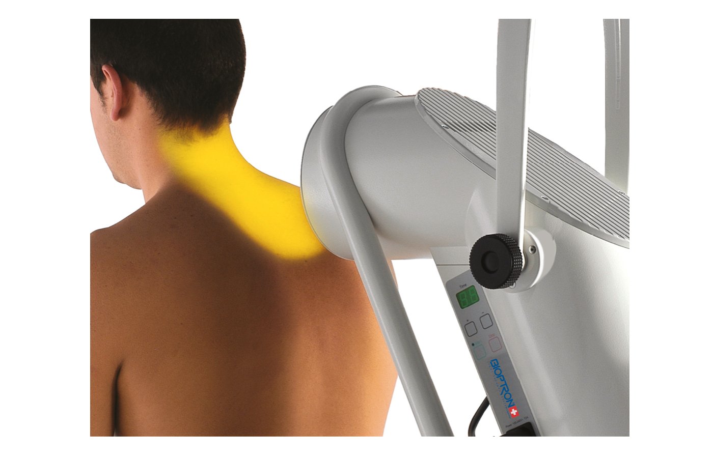 BIOPTRON® 2 leverer stabil lysenergi (omtrent 2,4 J/cm² per minutt) over store flater, noe som gjør det enkelt å jobbe systematisk med områder som rygg, skuldre, knær og større hudflater.