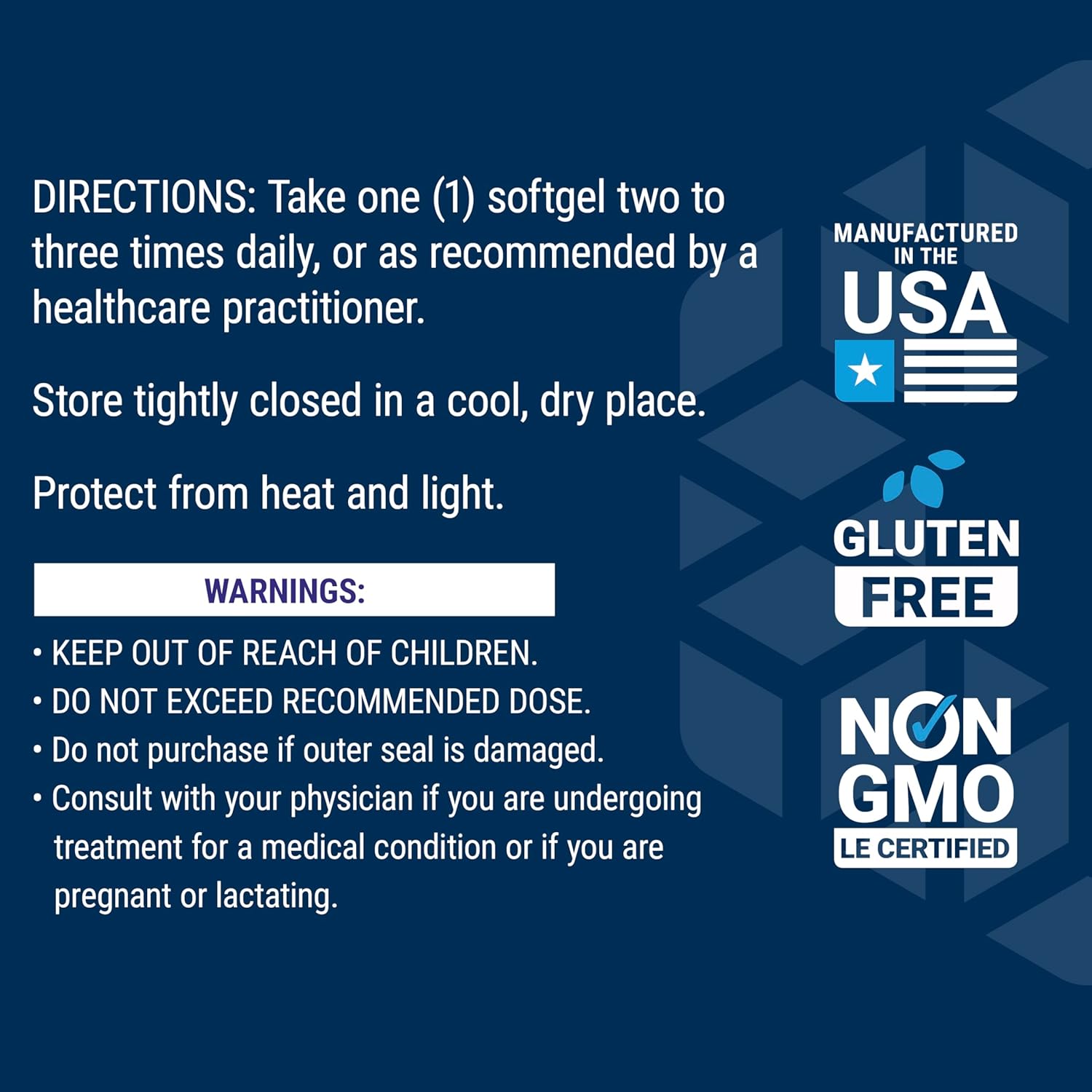 Tillatt brukt for voksne. All bruk av kosttilskudd skjer på eget ansvar og bør skje i samråd med lege. Anbefalt døgndose bør ikke overskrides. Effekten kan variere fra person til person. Kosttilskudd bør ikke erstatte et variert kosthold og en sunn livsstil. Oppbevares utilgjengelig for barn. Gravide, ammende og personer som bruker medisiner bør rådføre seg med lege før bruk. Uno Vita AS hevder ikke at produktene vi markedsfører kan kurere sykdom.