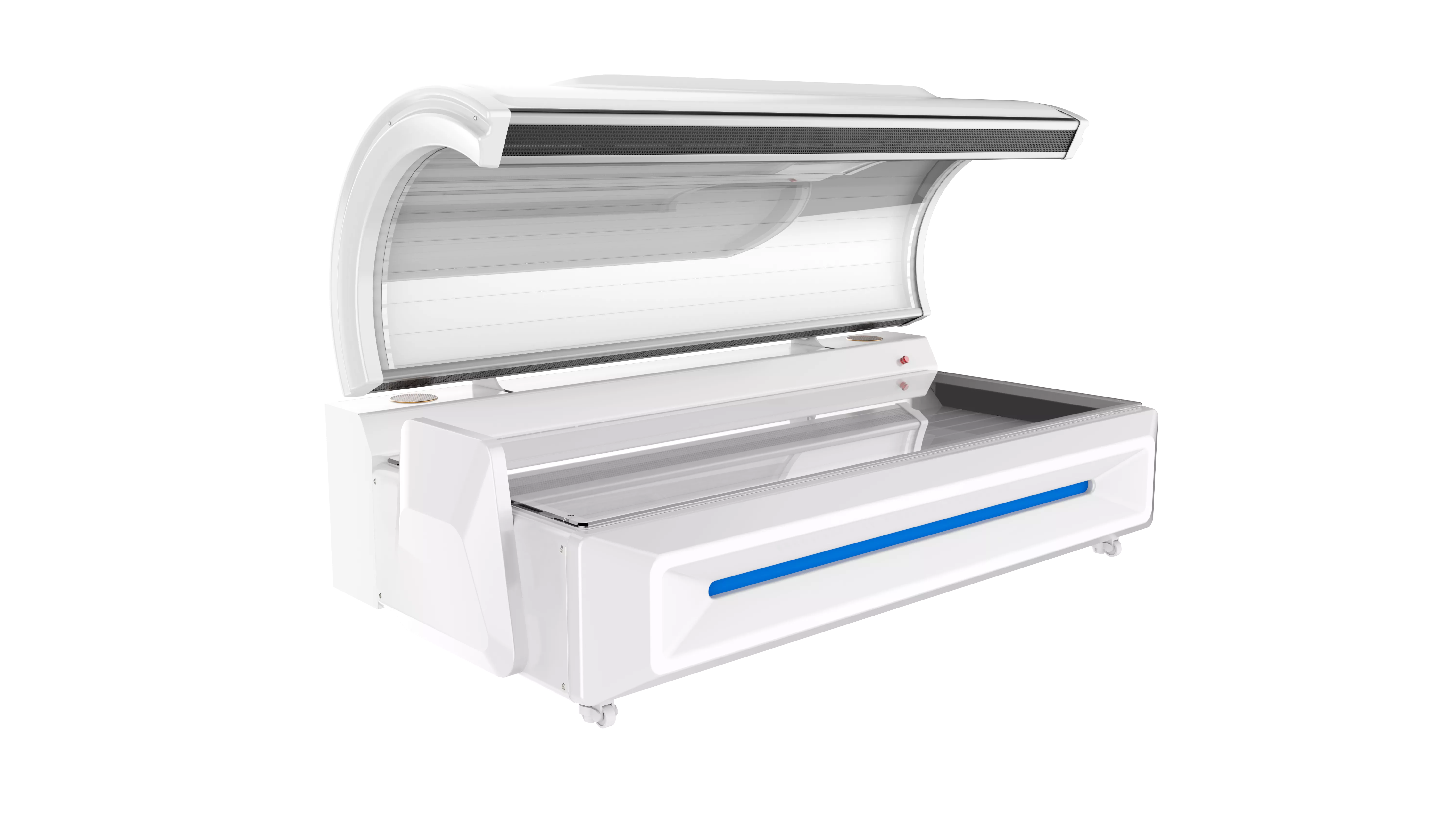 M5N+ kombinerer høy LED-tetthet, fem standardiserte bølgelengder (633 nm, 660 nm, 810 nm, 850 nm og 940 nm), justerbar pulsfrekvens opptil 50 000 Hz og 0–100 % duty cycle med en helomsluttende kapselkonstruksjon som sikrer jevn og homogen lysdistribusjon over hele kroppen. Den ergonomiske, horisontale full-kabindesignen simulerer en naturlig liggestilling og gir høy komfort under behandling, samtidig som et patentert selv-sirkulerende kjøle- og ventilasjonssystem sørger for stabil temperaturkontroll selv ved kontinuerlig klinisk bruk.