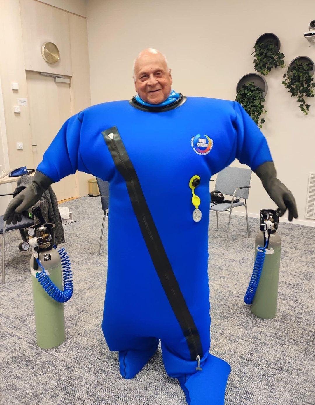 - Materiale: Lufttett drakt med glidelås og nakkeforsegling.