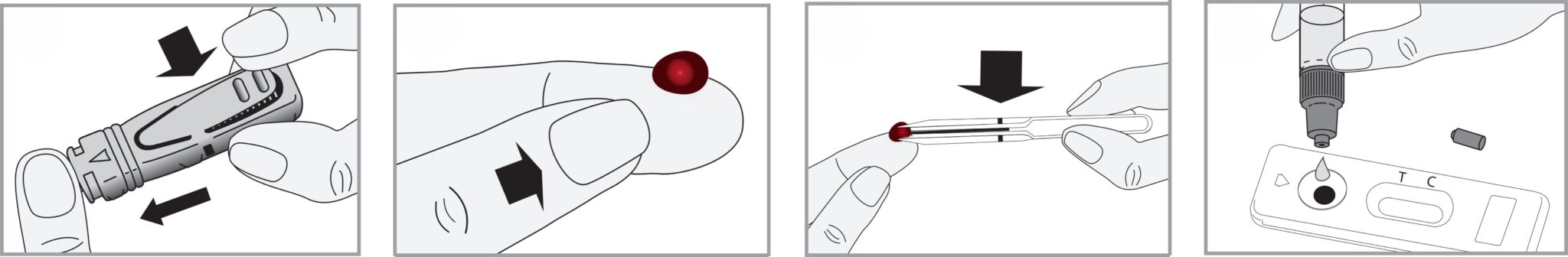 • Tilsett blodet i prøvebrønnen og tilsett 4 dråper fortynningsvæske