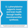 Støtter produksjonen av viktige nevrotransmittere: D, L-Fenylalanin omdannes i leveren til L-tyrosin, som deretter benyttes til å lage dopamin, noradrenalin og adrenalin. Dopamin er assosiert med belønningssystemet i hjernen og er avgjørende for kognitive funksjoner som læring og hukommelse. Noradrenalin og adrenalin spiller en viktig rolle i kroppens respons på stress og hjelper med å regulere humør og årvåkenhet.