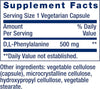 - Anbefalt bruk: For best utnyttelse kan fenylalanin tas sammen med medfølgende ko-faktorer som vitamin B6 og vitamin C.