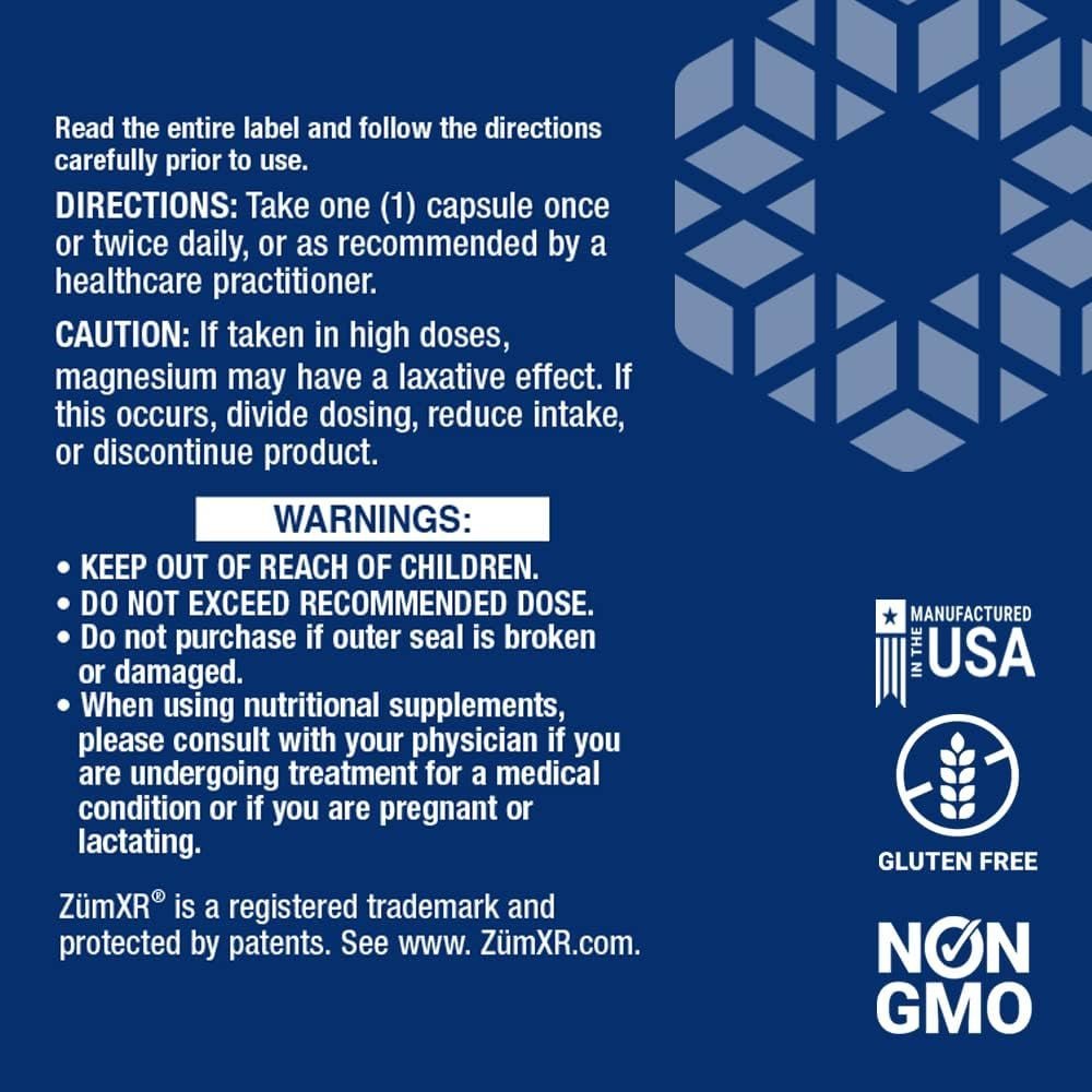 Innhold per kapsel: 250 mg magnesium (som ZümXR® magnesiumoksid, magnesiumsitrat)