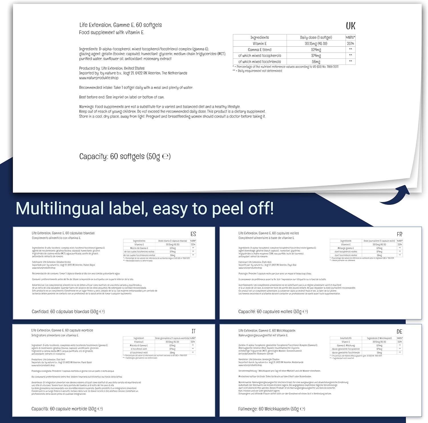 • Gamma E Blandet tokoferol/tokotrienol-kompleks (med 374 mg blandede tokoferoler, 56 mg blandede tokotrienoler): 524 mg