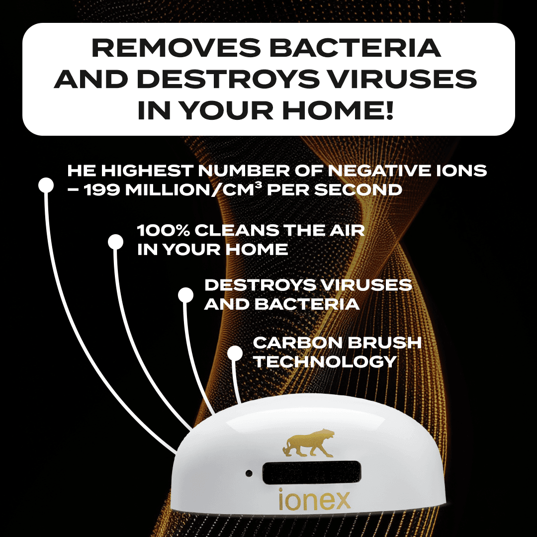 - Effektiv fjerning av forurensninger: IONEX binder negative ioner til støv, pollen, røyk, virus og bakterier, og fjerner dem fra luften.