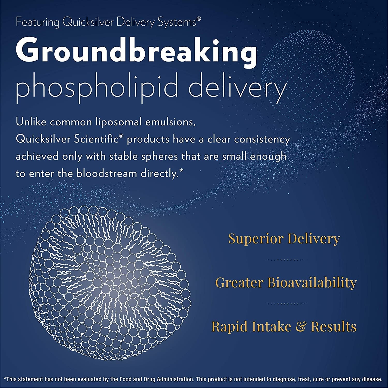 CoQ10 kan også støtte sunne funksjoner i det kardiovaskulære, respiratoriske og nervesystemet, samt hjernen og øynene. Quicksilver Scientific bruker avansert liposomal leveringsteknologi som sikrer høy absorpsjon og biotilgjengelighet.