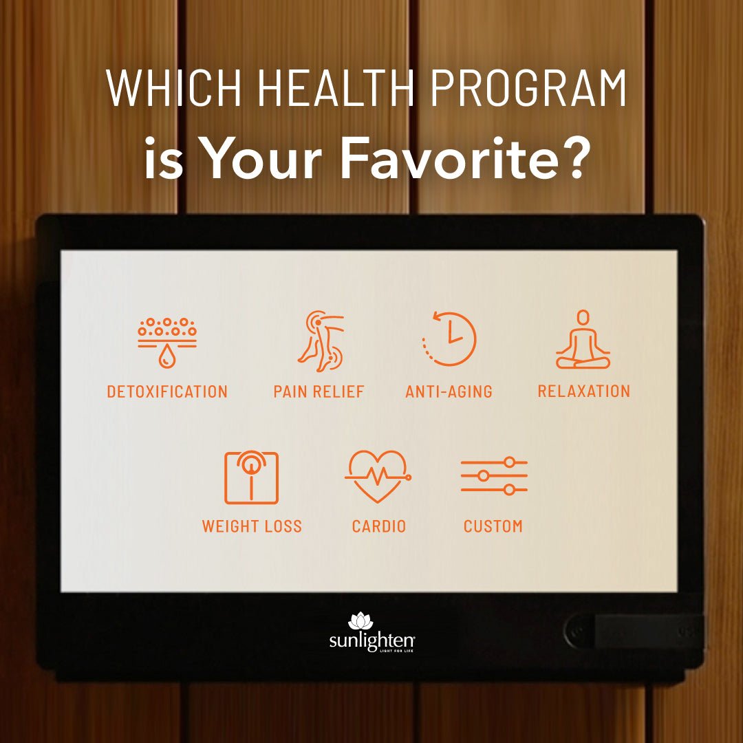 Skreddersydde helseprogrammer: mPulse®-badstuene tilbyr seks forhåndsinnstilte helseprogrammer som er basert på klinisk forskning og utviklet for å gi målrettede helsefordeler. Programmene inkluderer:
