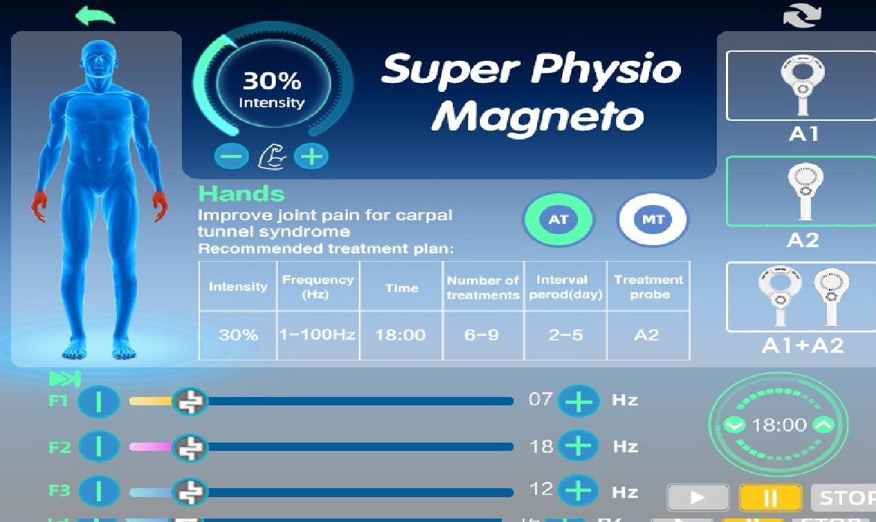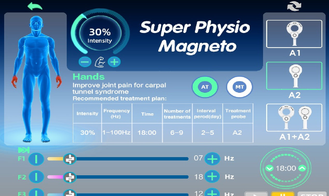 Apparatet tilbyr en kombinasjon av kraft, fleksibilitet og enkel bruk. AUTO-programmene gjør det raskt å komme i gang, mens MANUAL-modus gir full kontroll over frekvens, energi og pulsmønster. Den luftkjølte teknologien tillater langvarig drift uten overoppheting, og den solide konstruksjonen gir stabil ytelse i mange år. PMST PRO kan brukes både som hovedbehandling og som støtte til andre terapier som massasje, fysioterapi, laser eller sjokkbølge. Det passer perfekt for klinikker som ønsker å utvide sitt tilbud med moderne elektromedisinsk teknologi for smerte, restitusjon og generell helse.